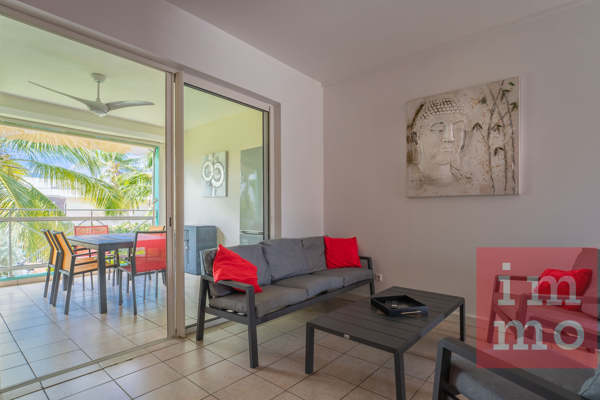 Saint-François (97118)Situé au 1er et dernier étage d’une résidence sécurisée et bien entretenue, cet appartement T4 séduit par son cadre verdoyant et sa vue dégagée sur la piscine, le jardin tropical et la mer au loin. La résidence possède un accès direct et sécurisé à la plage.