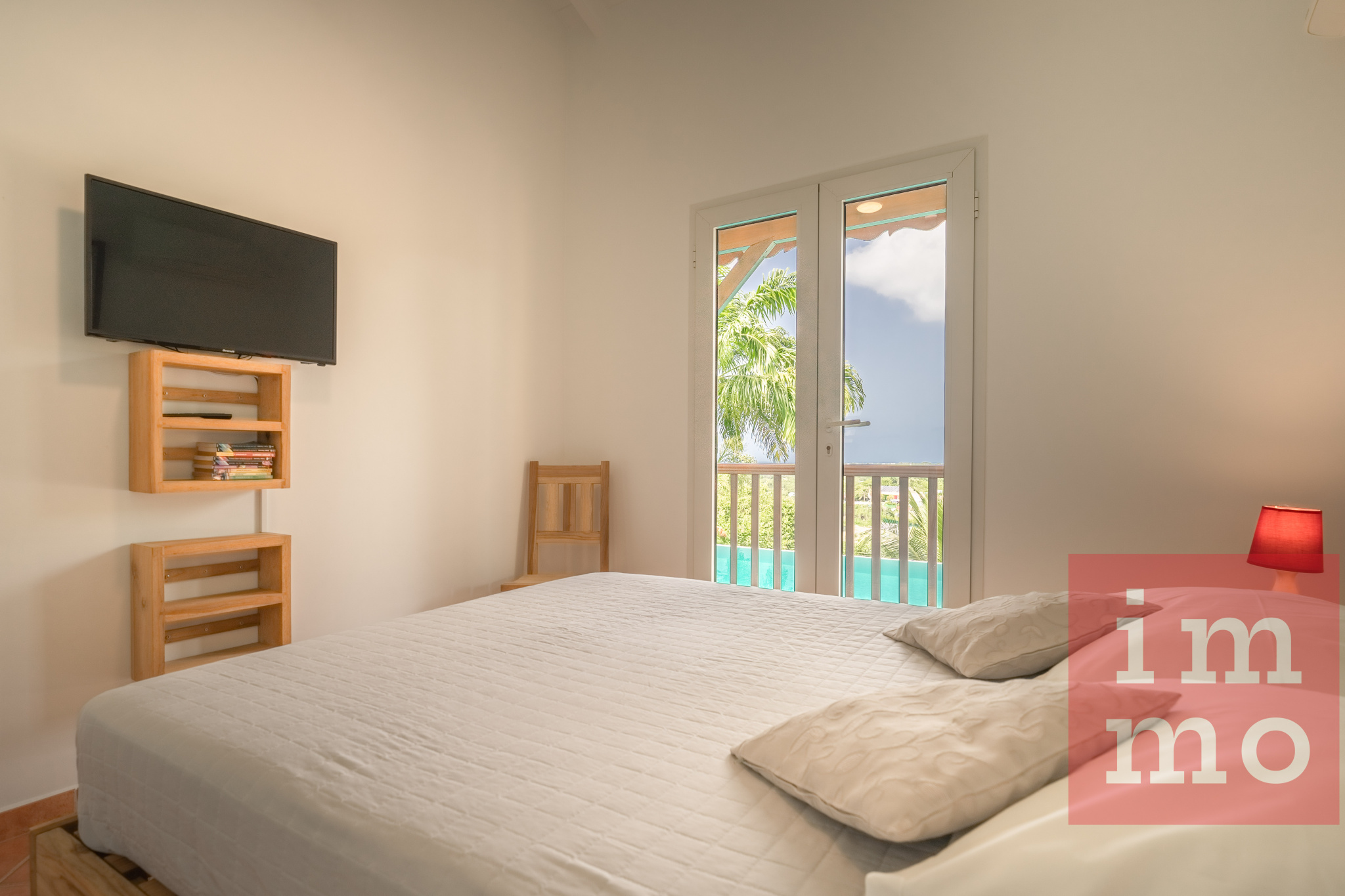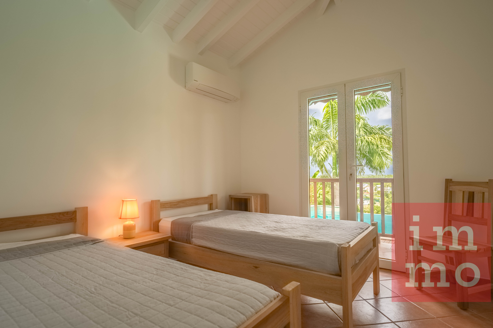 La villa principale dispose d’une superbe piscine à débordement avec vue dégagée sur la nature et la mer, d’une cuisine aménagée et équipée avec cellier indépendant, d’un séjour lumineux ouvert sur une grande terrasse conviviale, d’une master bedroom avec double dressing et salle d’eau avec WC, ainsi que de deux chambres supplémentaires dont une avec dressing, partageant une salle d’eau et un wc indépendant.