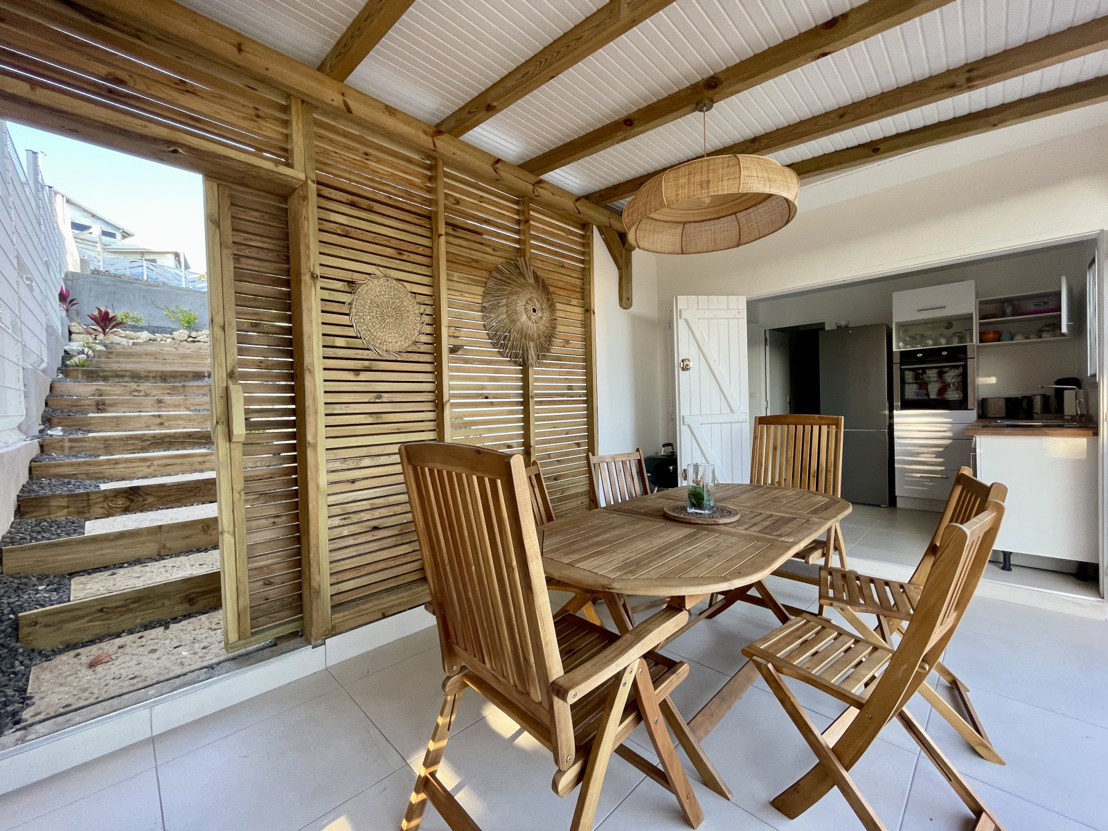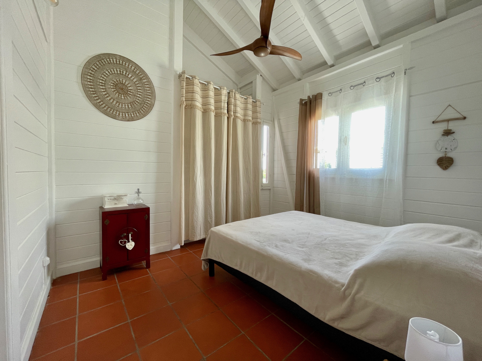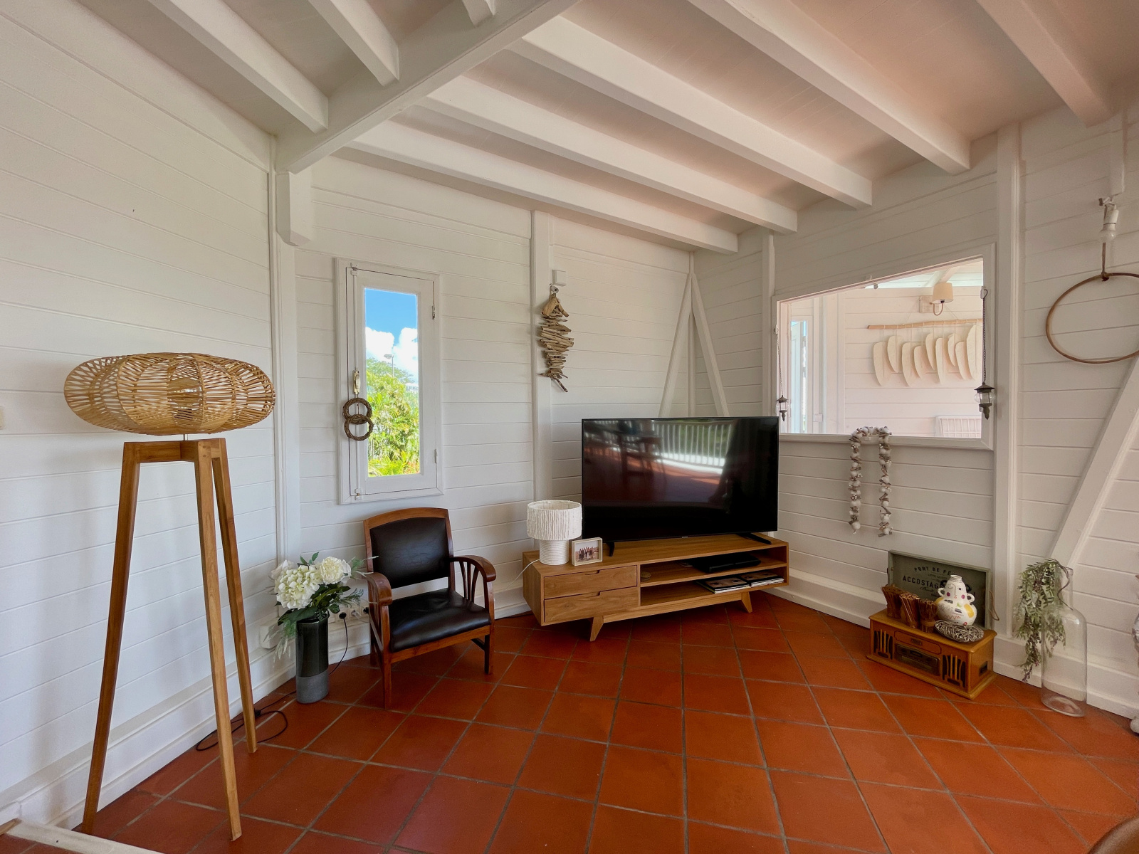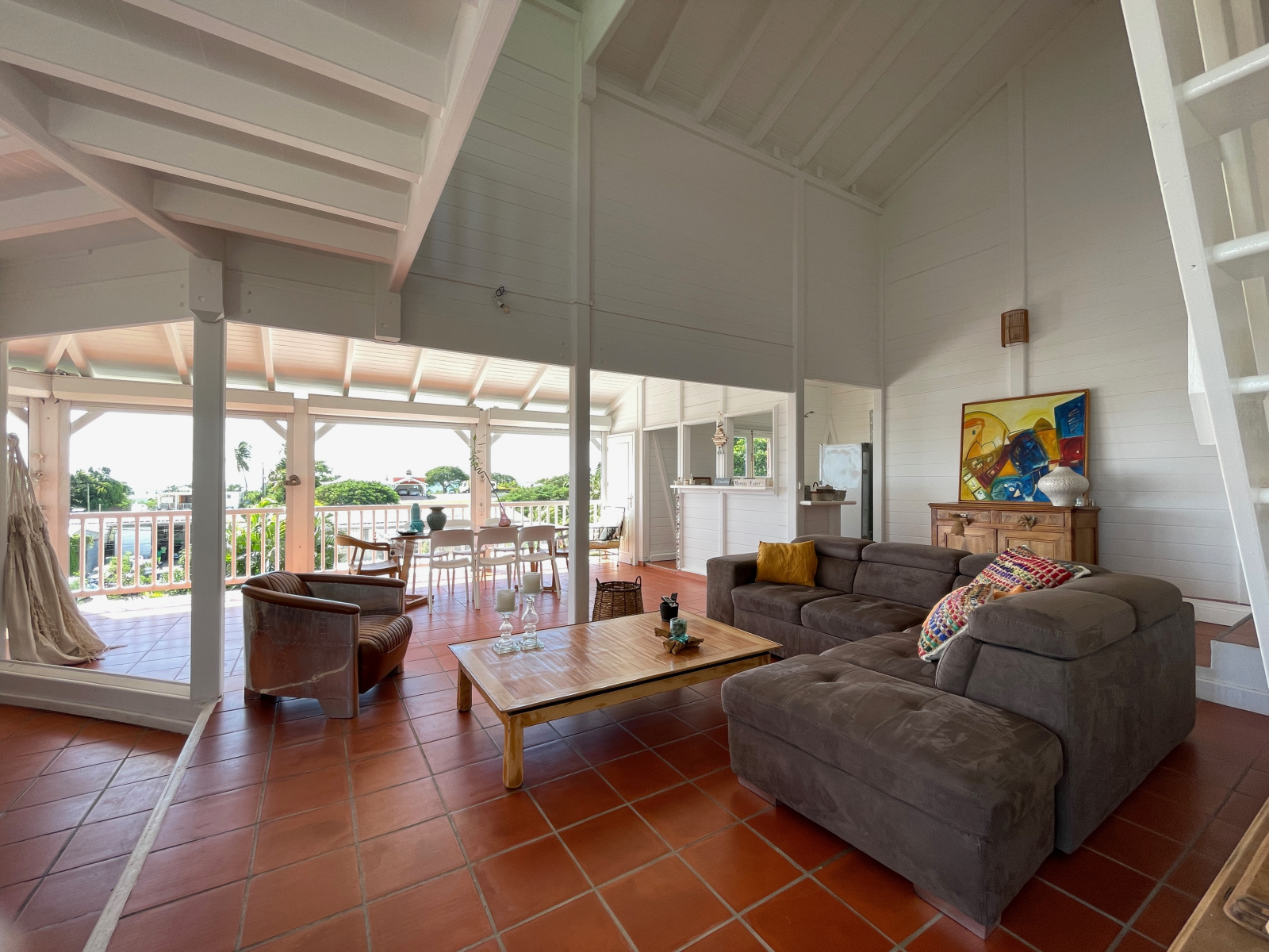 La villa possède un vaste salon / séjour largement ouvert vers la grande terrasse bien ventilée et une vue dégagée sur Saint-Francois.