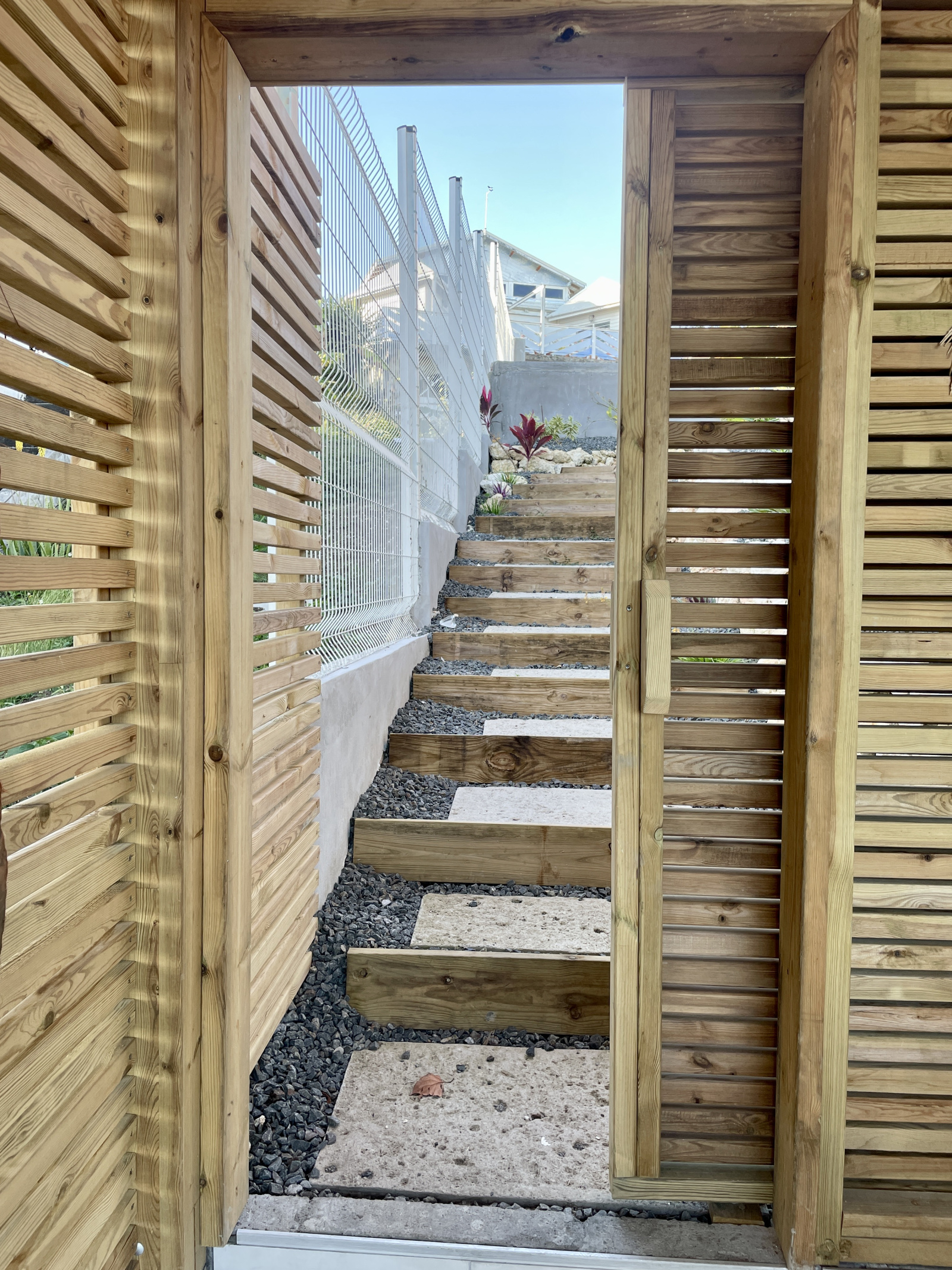 Aucun vis à vis entre les deux logements. Entrées et parking intérieurs indépendants.