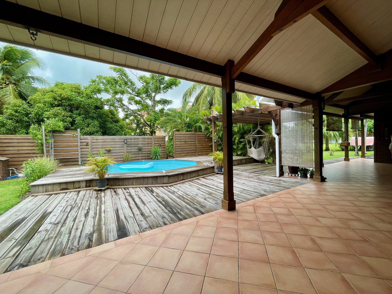 Villa F4 plus bureau. Piscine. Charme Tropical en Bois Rouge. Garage.