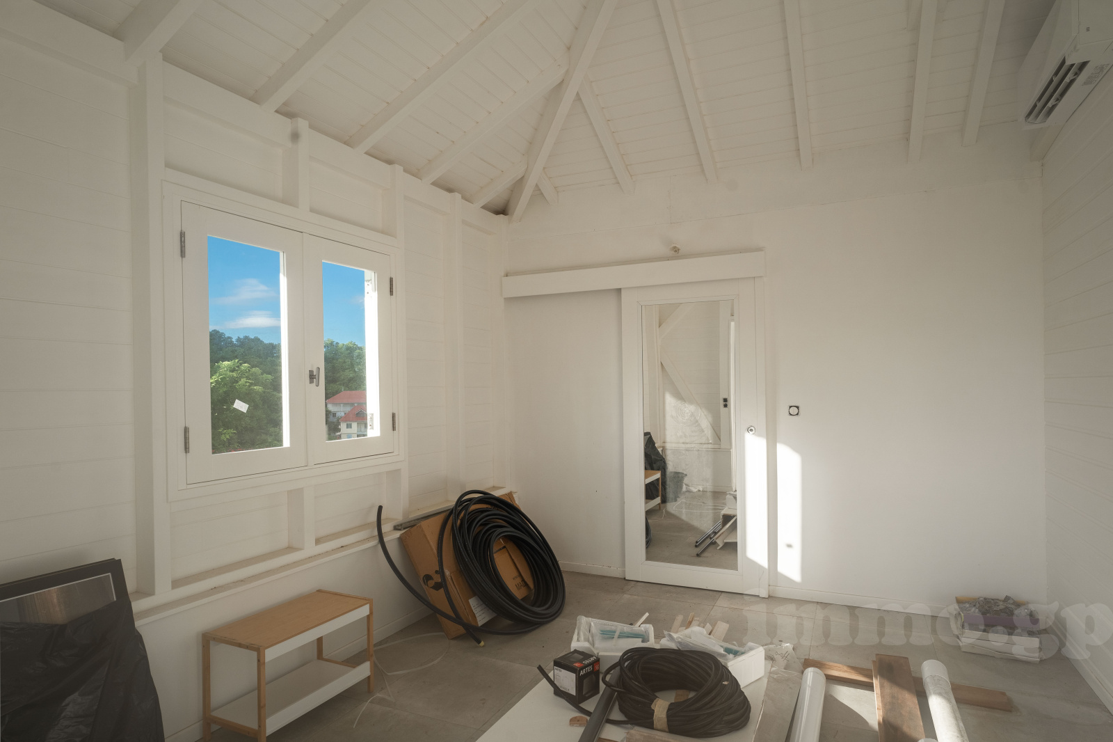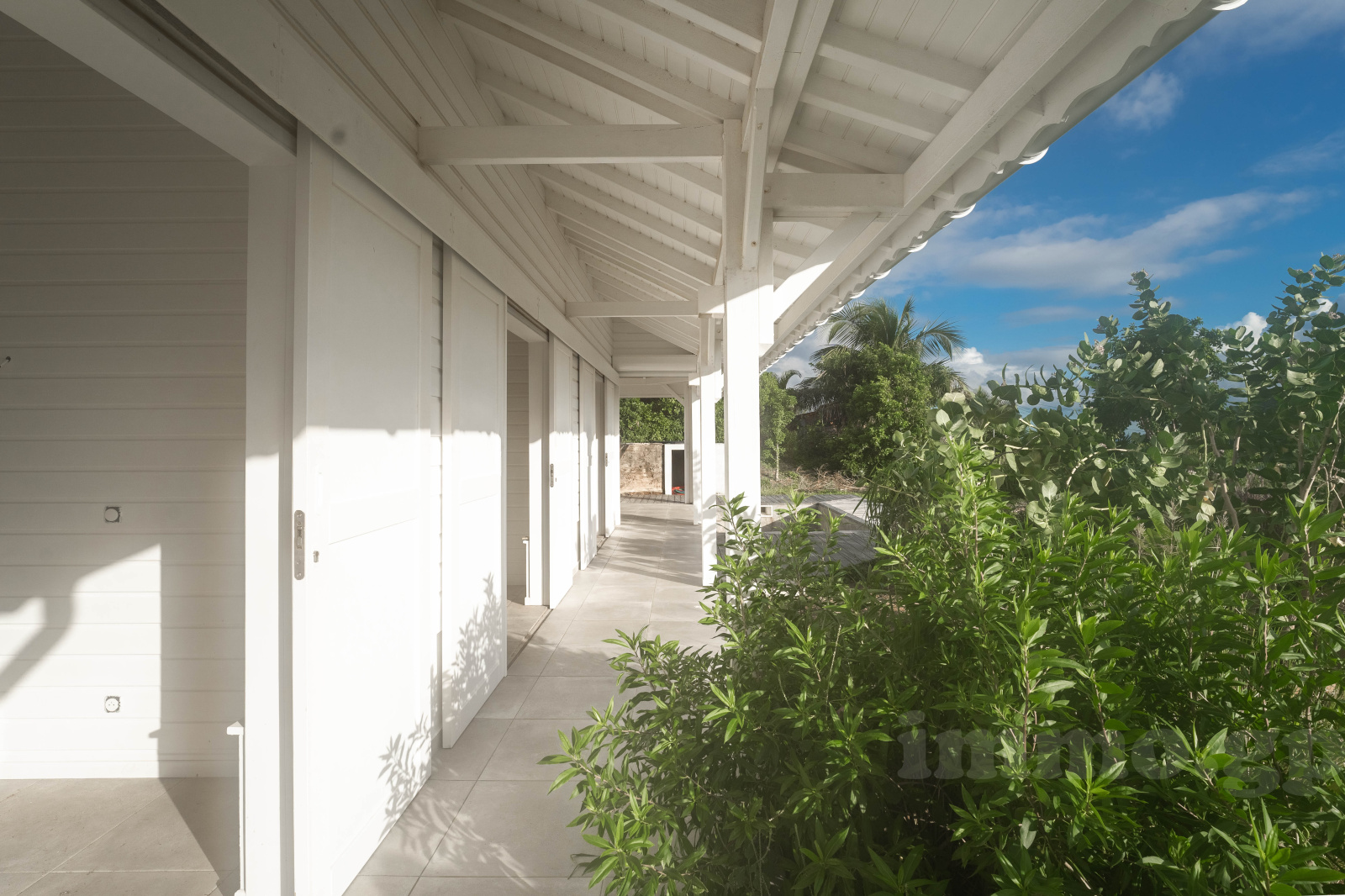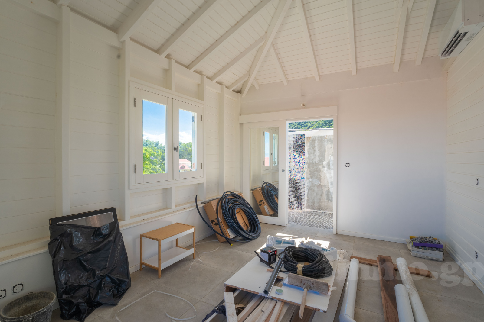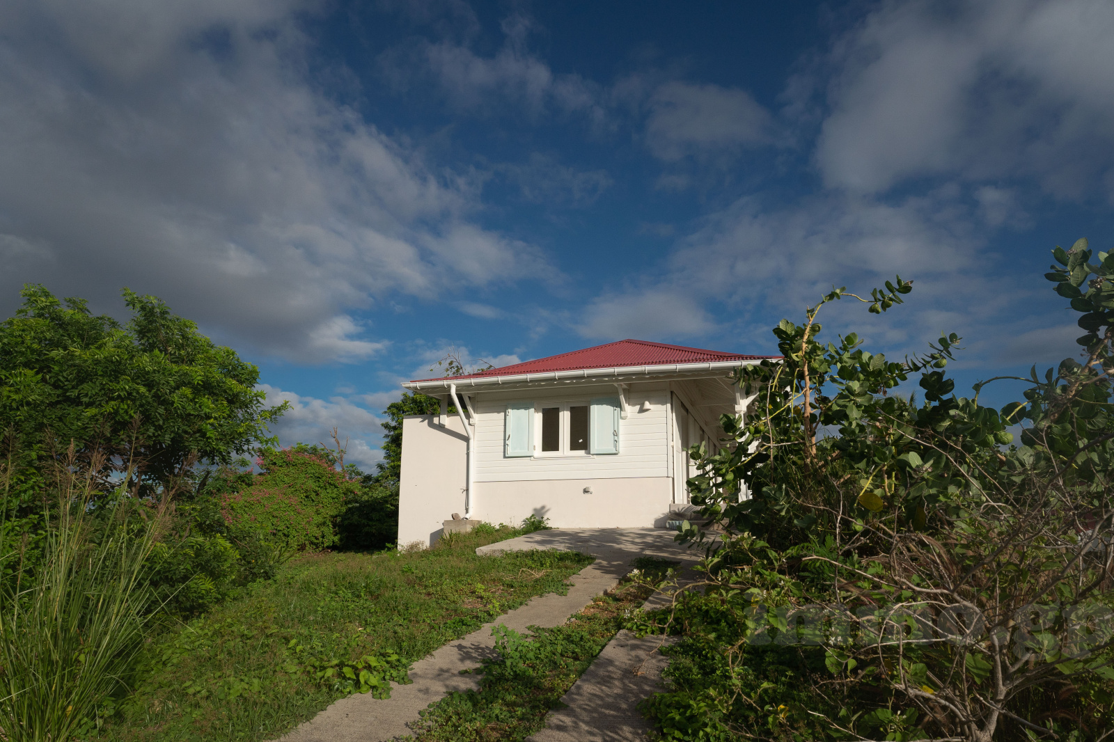 Villa de plain-pied édifiée en béton et bois exotique avec une charpente traditionnelle et toiture en aluminium. Toutes les pièces voient la mer. La villa est constituée d'un salon cuisine ouvrant sur un deck et piscine. Les trois chambres de 14 à 18 m2 bénéficient de larges ouvertures sur la terrasse et la cousrsive et se paratgent 2 salles d'eau et wc. Les salles d'eau sont équipées de vasques italiennes, les revêtements muraux sont réalisés en pâte de verre. Toutes les pièces sont climatisées.