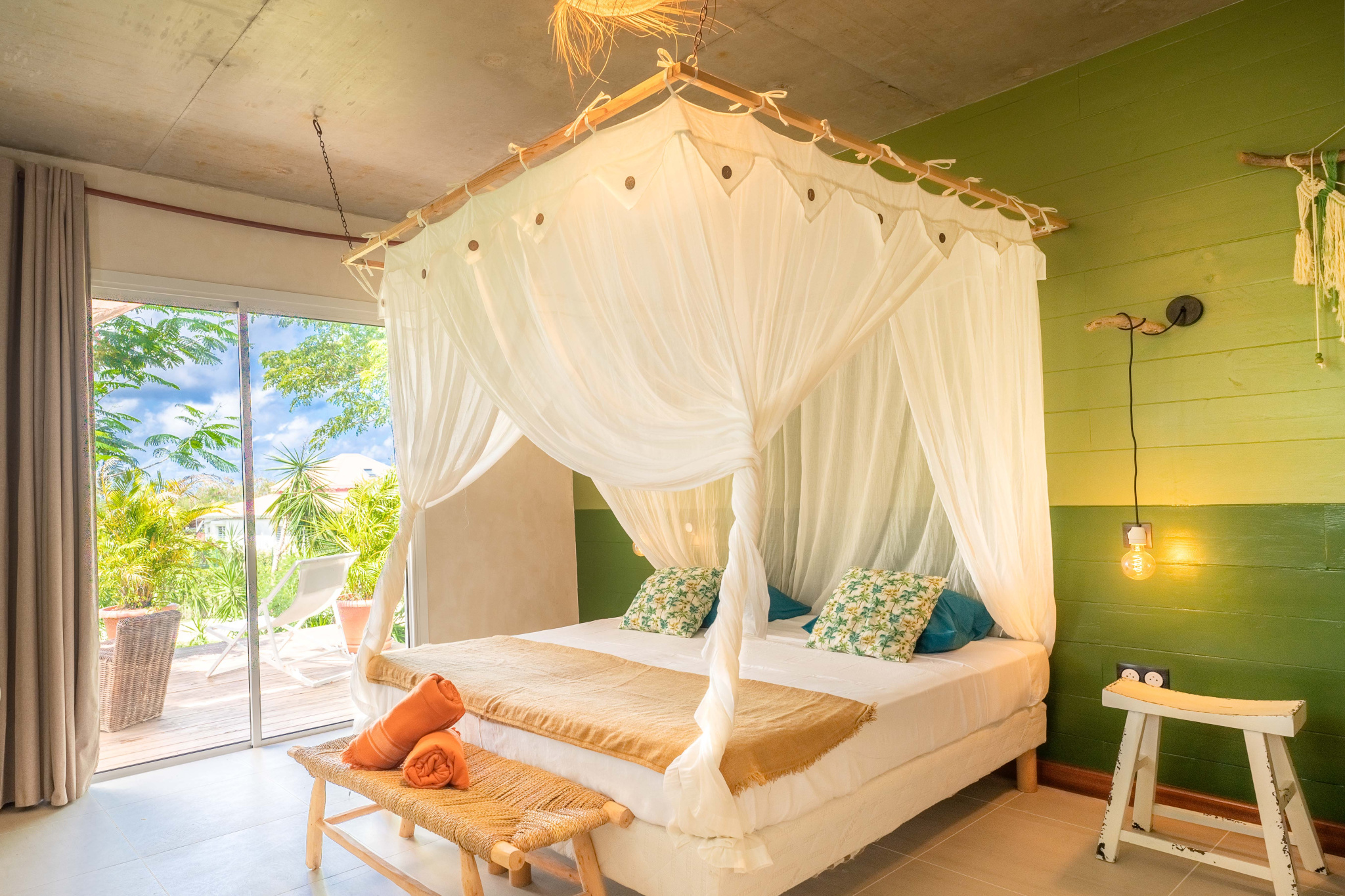 Trois chambres climatisées avec chacune sa salle d'eau privée, c'est trois espaces de vie où chacun peut vivre à son rythme. Elles sont toutes accessibles de l'extérieur.